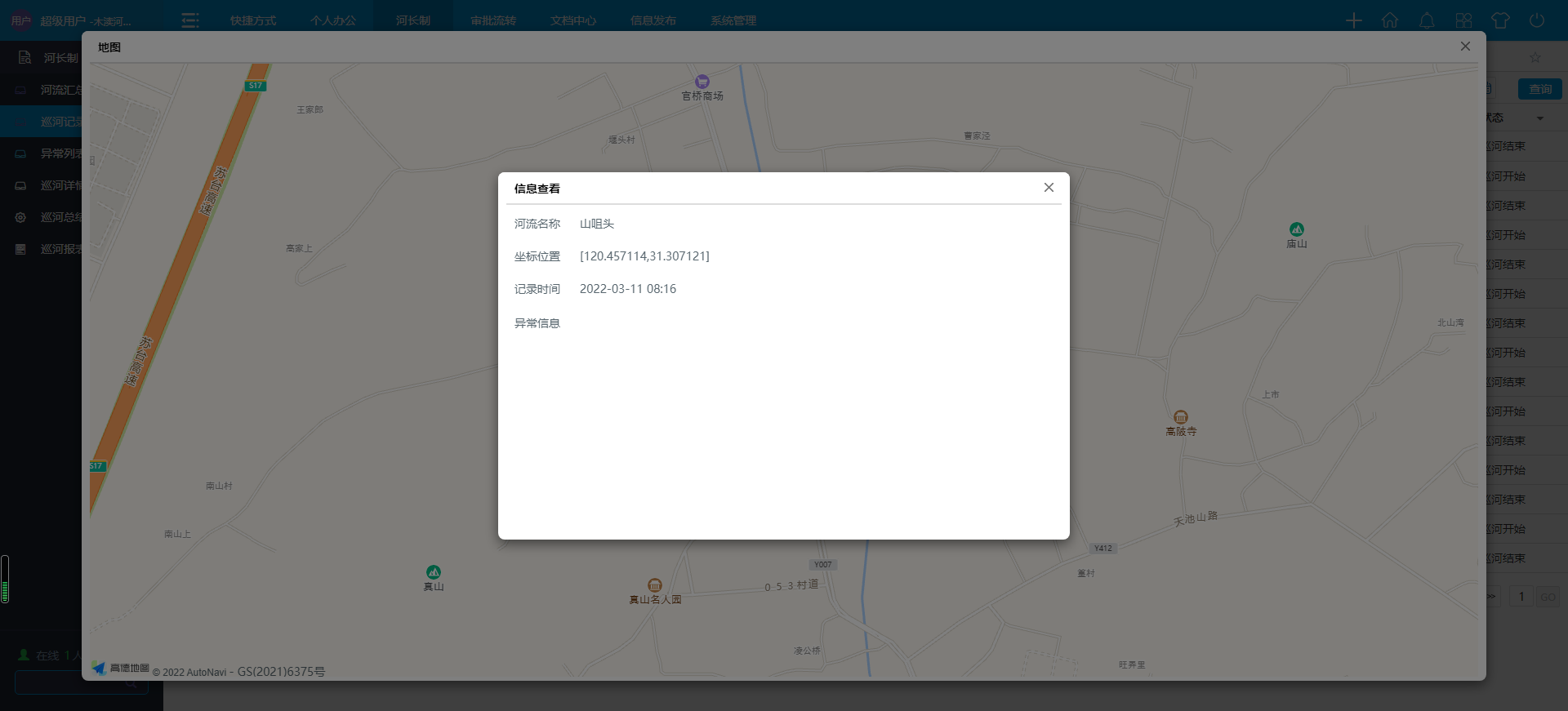 華天動力OA系統(tǒng)動態(tài)巡河圖,“一張圖”實(shí)現(xiàn)河長制數(shù)字化