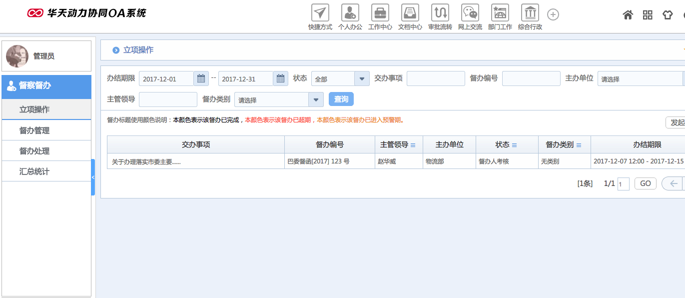 華天動力OA試用版功能測評(十六):督察督辦