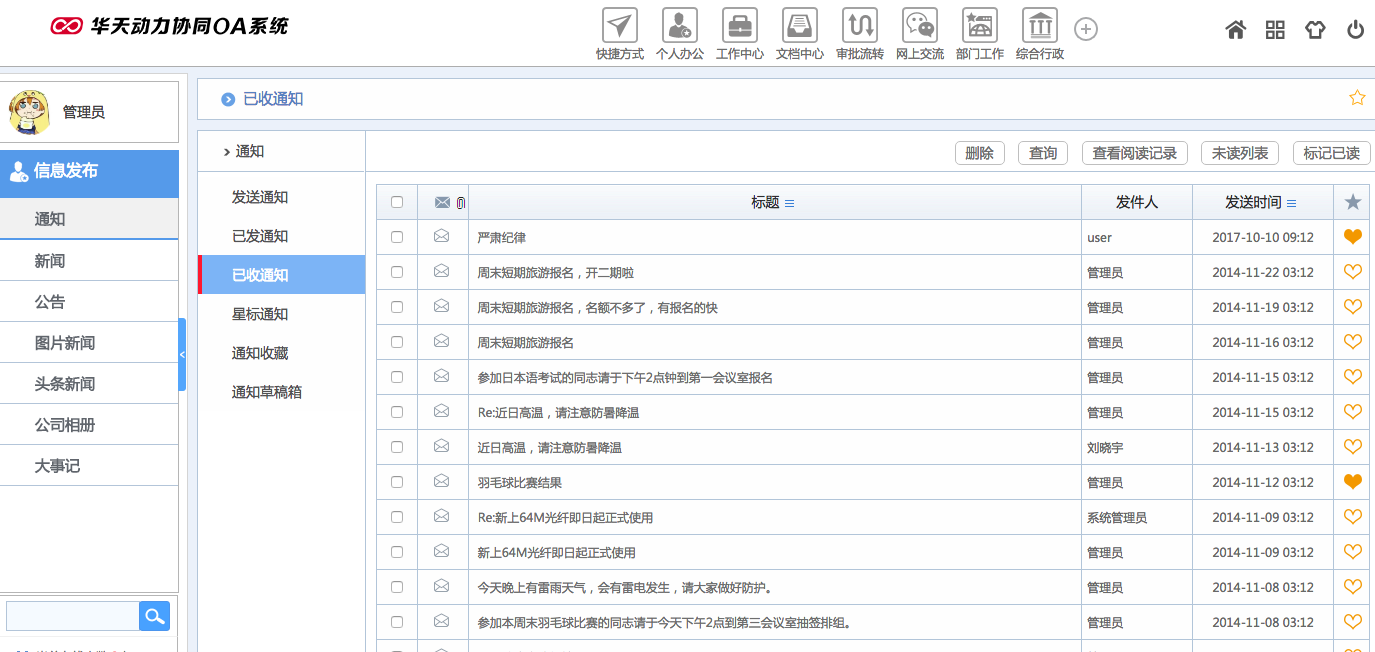 華天動(dòng)力OA試用版功能測評(píng)(十三):信息發(fā)布
