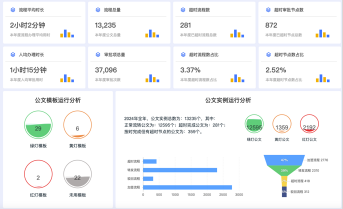 提供了豐富的流程總覽分析和功能,包括流程運(yùn)行總覽、公文運(yùn)行總覽、流程運(yùn)行分析、我的效率等多個(gè)模塊。流程運(yùn)行總覽模塊能夠展示企業(yè)所有流程的運(yùn)行狀態(tài),包括流程的總數(shù)、活躍流程數(shù)、已完成流程數(shù)等關(guān)鍵指標(biāo),以及各個(gè)流程的運(yùn)行時(shí)間、流轉(zhuǎn)環(huán)節(jié)等詳細(xì)信息。公文運(yùn)行總覽模塊則專注于公文的流轉(zhuǎn)情況,可以展示公文的總數(shù)、已辦公文數(shù)、待辦公文數(shù)等數(shù)據(jù),以及公文在各個(gè)部門和環(huán)節(jié)的流轉(zhuǎn)情況。流程運(yùn)行分析模塊通過對(duì)流程數(shù)據(jù)的深入分析,生成各種圖表和報(bào)表,如流程效率分析圖、流程瓶頸分析圖、流程質(zhì)量分析圖等,幫助企業(yè)直觀地了解流程的運(yùn)行效率和質(zhì)量狀況,為流程優(yōu)化提供有力支持。我的效率模塊則為用戶提供了一個(gè)個(gè)人工作效率分析的平臺(tái),用戶可以在這里查看自己處理任務(wù)的速度和質(zhì)量,了解自己在流程中的表現(xiàn)和貢獻(xiàn),從而有針對(duì)性地提升個(gè)人工作效率。